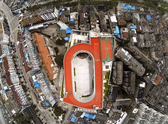 Sân điền kinh trên nóc nhà độc đáo này được khánh thành vào tháng chín năm nay. Rất bất ngờ, phương án tạm thời cuối cùng lại trở thành một công trình kiến trúc được công nhận trên toàn thế giới. Sân điền kinh trên nóc nhà cũng là công trình đại diện cho Trung Quốc tham gia Triển lãm kiến trúc Venice lần thứ 14.