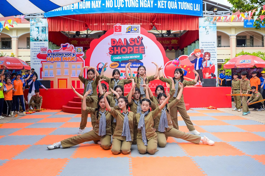Chương trình “Đại sứ Shopee – Trường học hạnh phúc” mang đến một làn gió mới cho hoạt động ngoại khóa học đường, được triển khai tại nhiều trường THPT trên cả nước, hướng đến mục tiêu xây dựng môi trường giáo dục tích cực, an toàn và hạnh phúc cho học sinh. Chương trình kết hợp hài hòa giữa trải nghiệm thực tiễn, yếu tố giải trí và tương tác tập thể, tạo điều kiện để học sinh rèn luyện kỹ năng mềm, nuôi dưỡng tư duy sáng tạo và hình thành tinh thần hợp tác. Tại mỗi điểm trường, các hoạt động của “Trường Học Hạnh Phúc” đã biến khuôn viên trường học thành không gian sinh hoạt sôi động, với hơn 1.000 học sinh và giáo viên cùng tham gia, góp phần lan tỏa những giá trị tích cực về một môi trường học đường an toàn, thân thiện và hạnh phúc.
