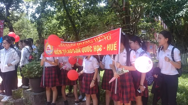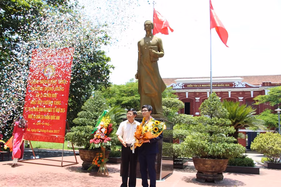 Học sinh Trường THPT chuyên Quốc học Huế đón mừng Trương Đông Hưng