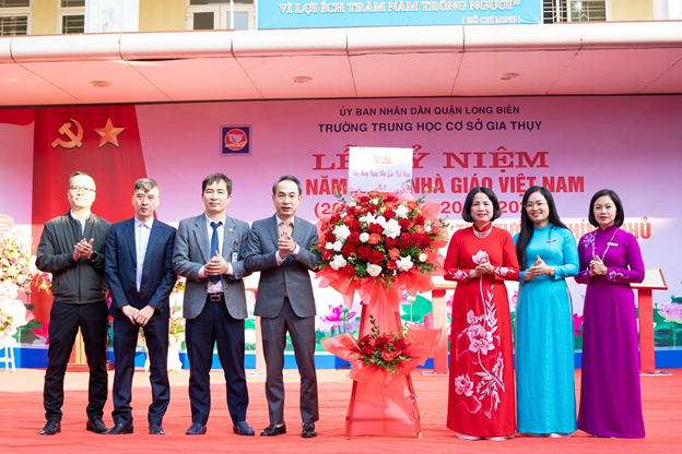 Tại buổi lễ, Phó bí thư Quận uỷ, Chủ tịch UBND quận Long Biên Nguyễn Mạnh Hà; Quận Uỷ Viên, Trưởng phòng Nội vụ quận Long Biên Nguyễn Thị Thu Hằng và lãnh đạo UBND Phường Gia Thuỵ đã tặng hoa chúc mừng Trường THCS Gia Thụy vì những thành tích xuất sắc đã đạt được.