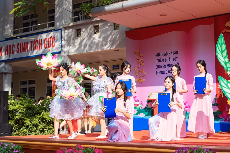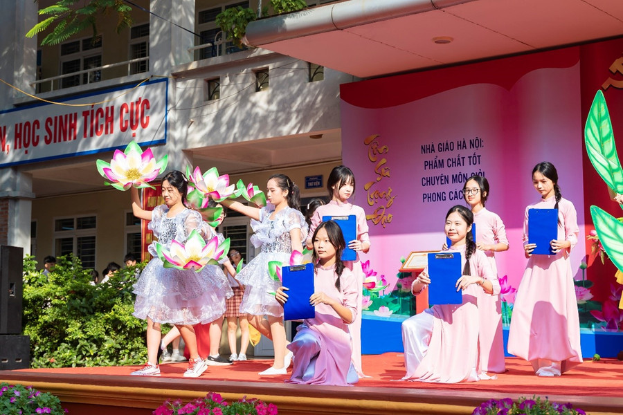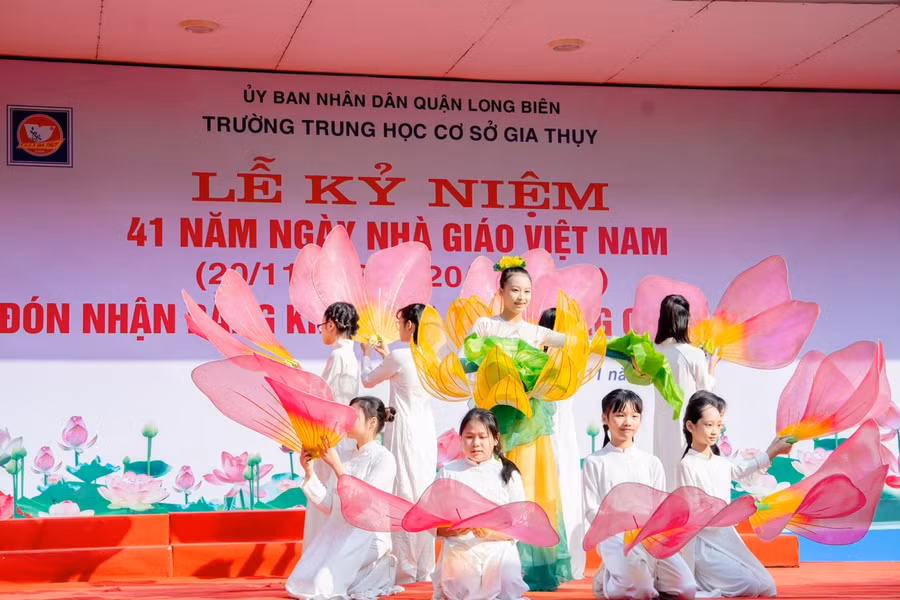 Đại diện hơn 1.800 học sinh Trường THCS Gia Thụy, em Nguyễn Thiên Mỹ, học sinh lớp 9A6 đã bày tỏ lòng biết ơn, kính trọng đối với các thầy cô trong dịp lễ vô cùng đặc biệt này.