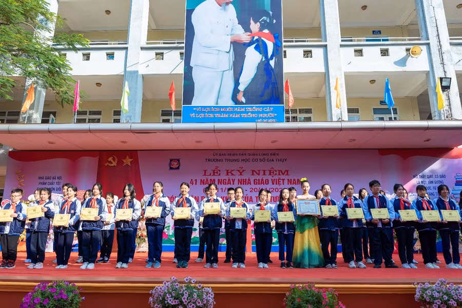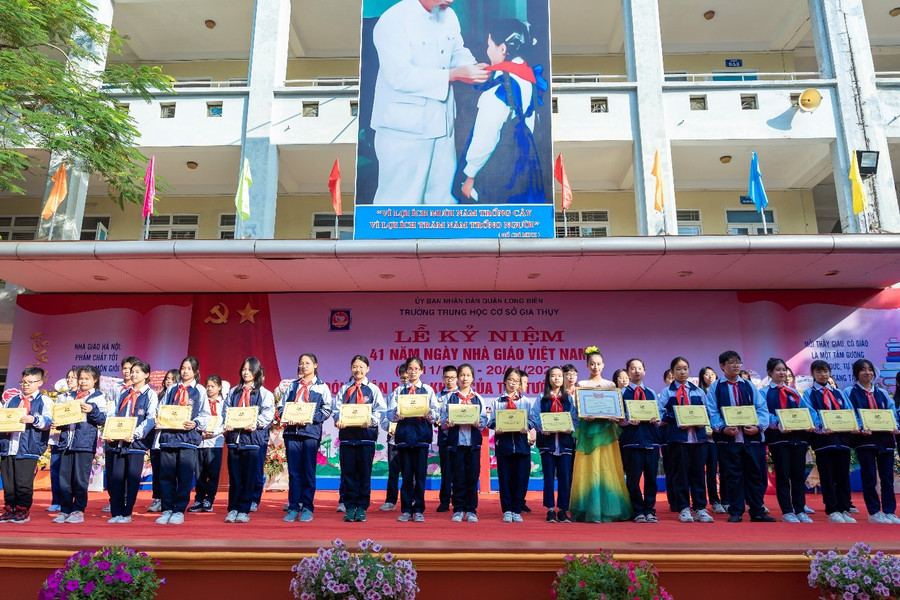 Theo cô Hiệu trưởng Nguyễn Thị Mỹ Linh, với những thành tích đáng tự hào trên, trong buổi lễ trang trọng này, Trường THCS Gia Thụy được đón nhận nhiều tin vui.