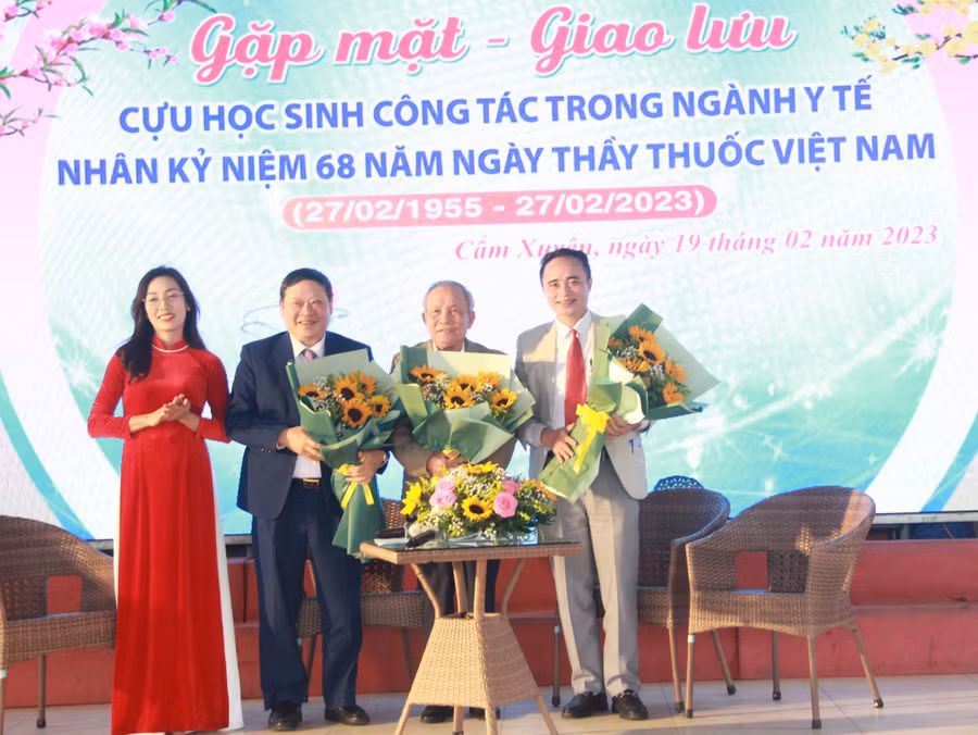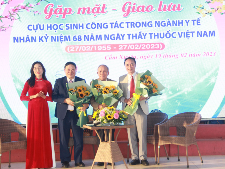 Cũng tại buổi gặp mặt này, trường THPT Cẩm Bình đã trao biểu trưng và những bó hoa tươi thắm để ghi nhận, tôn vinh sự đóng góp của các y, bác sĩ, cán bộ, nhân viên ngành y tế từng là học sinh của nhà trường.