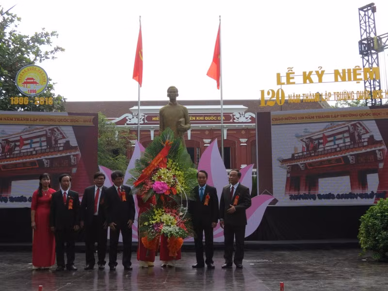 120 năm qua, Quốc Học là cái nôi của hiền tài, hào kiệt đất nước. Nơi đây, nhiều nhà lãnh đạo của Đảng, Nhà nước, nhiều nhà khoa học, văn nghệ sĩ nổi tiếng của Việt Nam từng học tập. Người học sinh ưu tú nhất của trường là Nguyễn Tất Thành - Chủ tịch Hồ Chí Minh, vị lãnh tụ kính yêu của dân tộc, một người bạn lớn của nhân dân lao động trên thế giới. Người được UNESCO công nhận là “Vị anh hùng giải phóng dân tộc - danh nhân văn hóa của thế giới”.