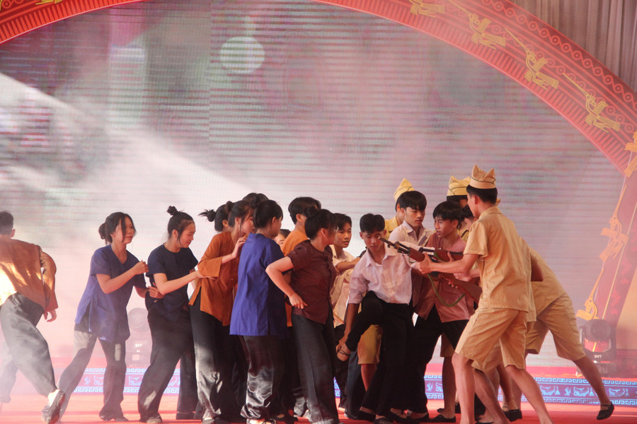 | Một số tiết mục văn nghệ do thầy và trò trường THPT Nguyễn Trung Thiên biểu diễn tại lễ kỷ niệm. |