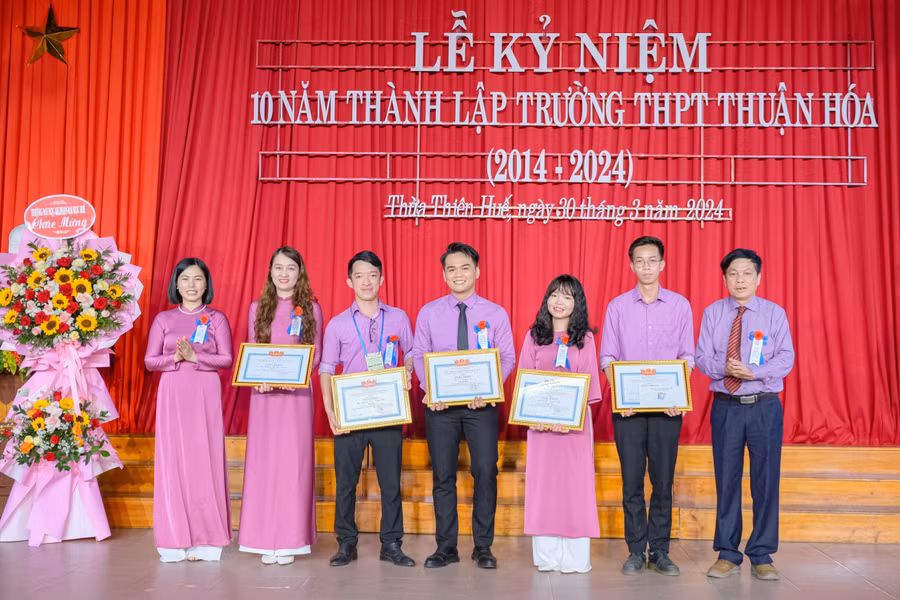 | Khen thưởng các giáo viên Trường THPT Thuận Hóa. (Ảnh: Hoài Nam) |