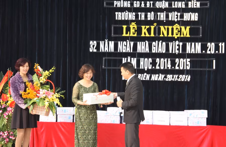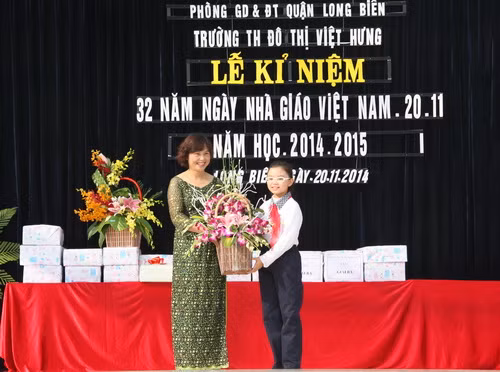 Phát biểu tại buổi lễ, cô Hiệu trưởng Nguyễn Thị Hằng Nga - Bí thư Chi bộ - xúc động chia sẻ: “Năm học 2014 – 2015 là năm học đầu tiên cô và trò nhà trường tổ chức lễ mừng kỷ niệm ngày 20/11 tại ngôi trường mới.