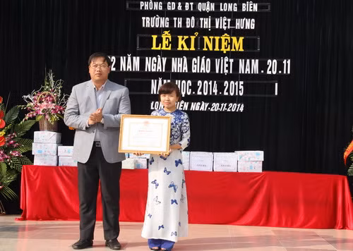 Trong khuôn khổ buổi lễ, cô giáo Hoàng Thị Hiền - chủ nhân danh hiệu Nhân viên thư viên xuất sắc cấp toàn quốc - vinh dự nhận Bằng khen của Bộ trưởng Bộ GD&ĐT; cô Nguyễn Thị Hằng Nga - Bí thư Chi bộ - Hiệu trưởng nhà trường, cán bộ quản lý tiêu biểu - nhận danh hiệu Chiến sĩ thi đua cấp cơ sở; nhiều cô giáo vinh dự nhận Giấy khen cho những thành tích trong phong trào thi đua dạy tốt – học tốt cấp trường, cấp Quận.