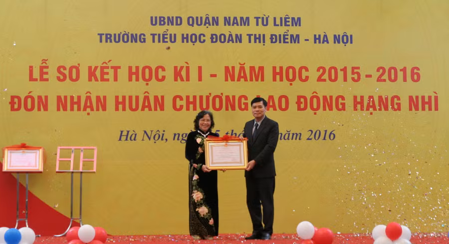 Ghi nhận những đóng góp to lớn của thầy và trò trường tiểu học Đoàn Thị Điểm, ngày 4/11/2015, Chủ tịch nước đã kí quyết định số 2466 và 2468 tặng thưởng Huân chương lao động hạng Nhì cho tập thể nhà trường và cho cá nhân cô hiệu trưởng - NGƯT Nguyễn Thị Hiền.