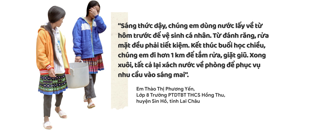 Nước trở thành mặt hàng khan hiếm nên cả thầy và trò đều ý thức tiết kiệm. Chị Mã Thị Dao, nhân viên phục vụ Trường PTDTBT THCS Hồng Thu kể: “Chúng tôi phải sử dụng tiết kiệm nước trong mọi công việc. Nước qua sử dụng không đổ đi mà tận dụng để tưới hoa, rửa nhà vệ sinh”.