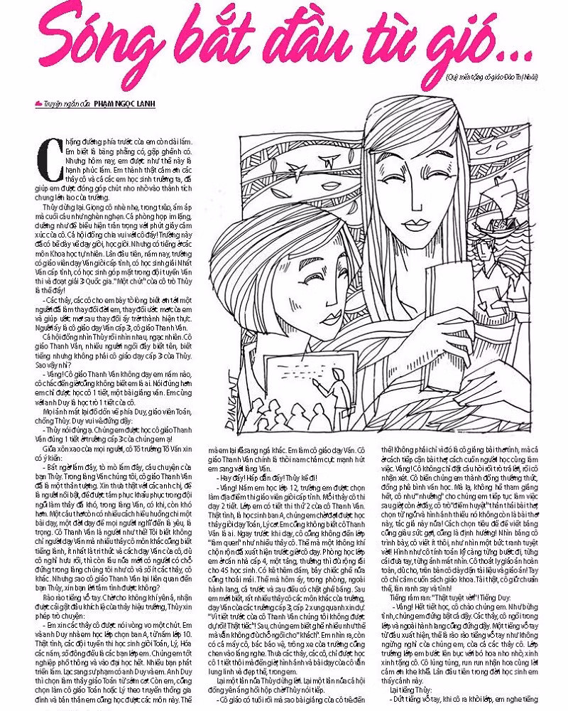 Nhẹ nhàng, sâu lắng, truyện ngắn với một nhan đề rất thơ “Sóng bắt đầu từ gió…” của Phạm Ngọc Lanh đọng lại trong tâm trí tôi ấn tượng đậm sâu, từ đó bừng ngộ những bài học ý nghĩa.