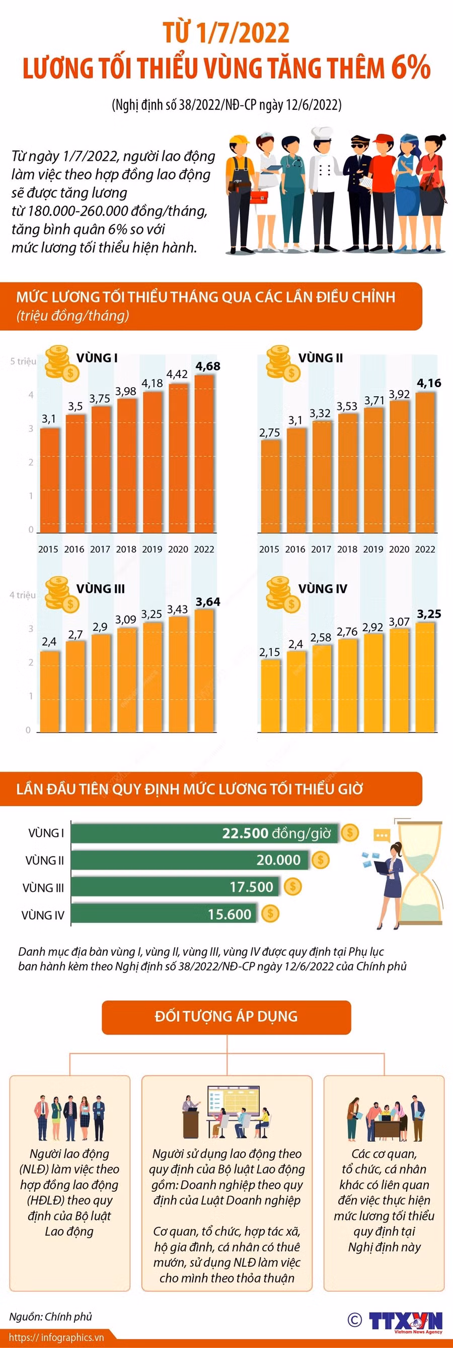 Từ 1/7/2022, lương tối thiểu vùng tăng thêm 6%