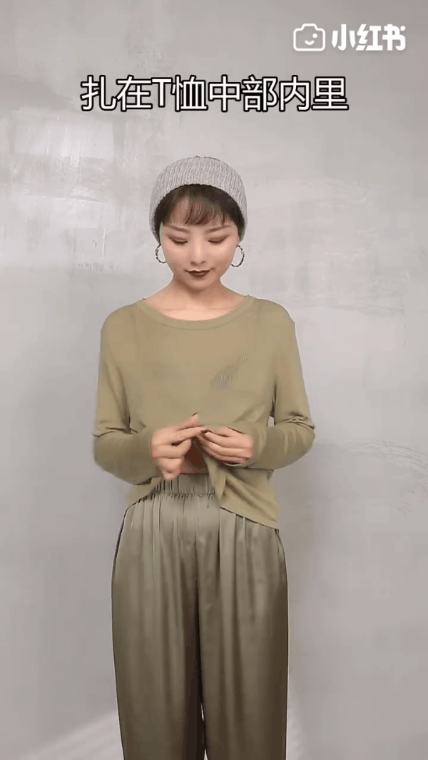 Với 1 chiếc áo thun mỏng dáng rộng, hãy dùng 1 chiếc chun nhỏ để tạo được vài ba chiếc áo khác nhau nhé.
