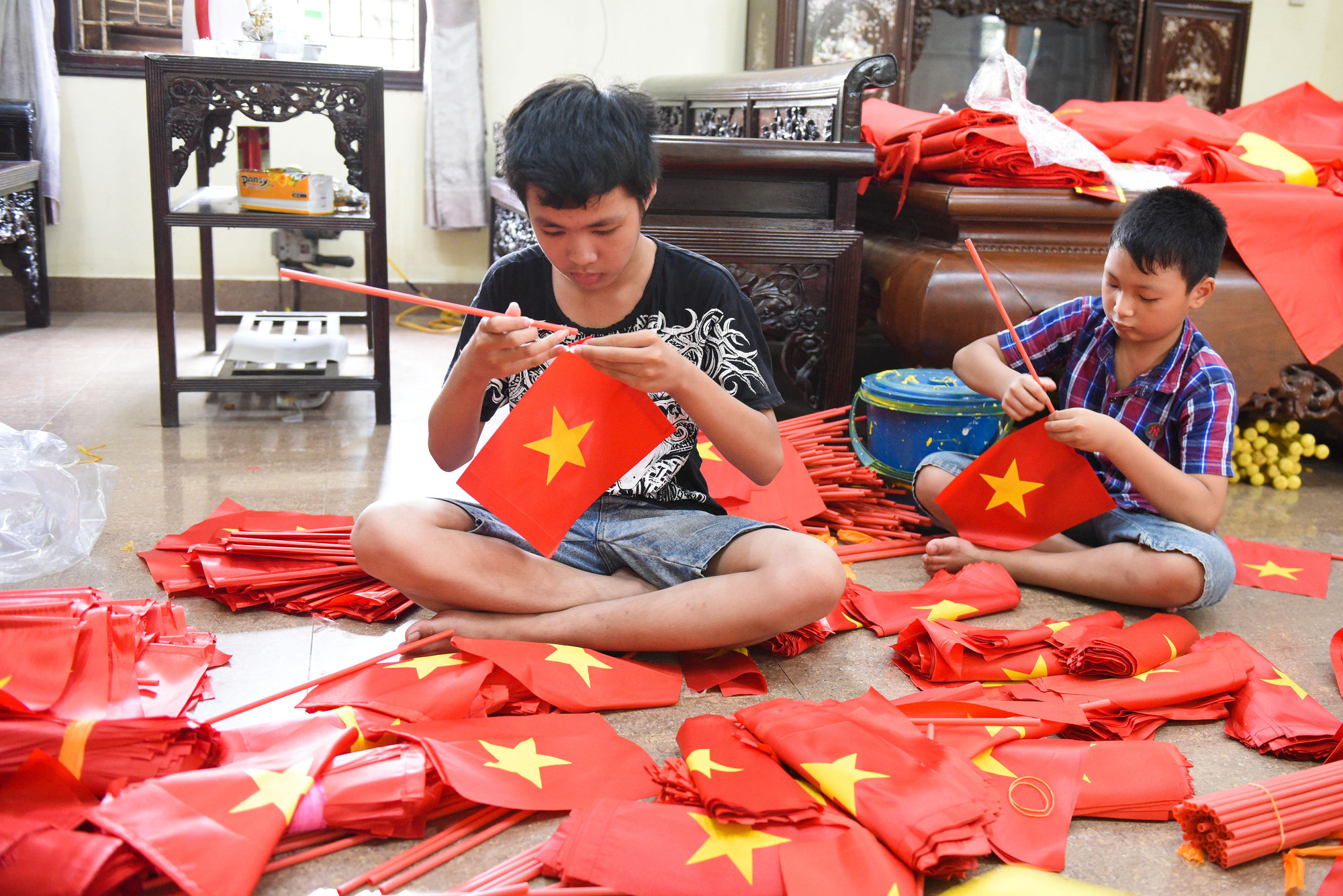 | Dịp Quốc khánh 2/9 đến gần cũng là lúc các gia đình tại làng nghề Từ Vân hối hả sản xuất các loại cờ Tổ quốc cung ứng cho thị trường. |