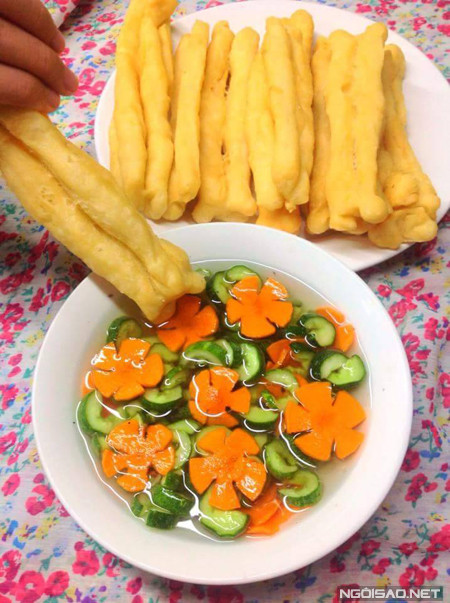Chiên bột với 2/3 chảo dầu và lửa vừa cho đến khi vàng đều các mặt là được quẩy nóng.