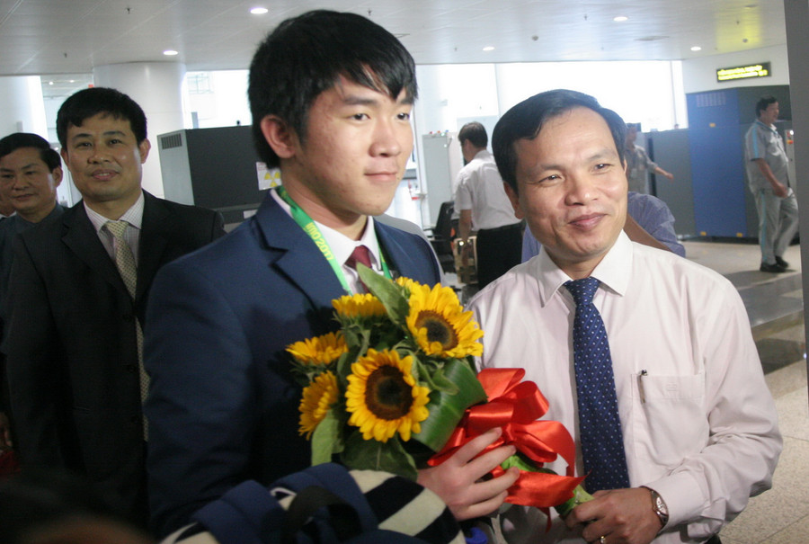 Cảm động trước sự đón tiếp nồng nhiệt tại sân bay, thầy trưởng đoàn Lê Anh Vinh chia sẻ cảm xúc: Sau chuyến bay dài nửa vòng trái đất nhưng các thành viên trong đội tuyển không hề mệt mỏi vì nhận được sự đón tiếp nhiệt tình của mọi người. Các thành viên trong đoàn rất xúc động khi nhận được sự quan tâm như vậy.