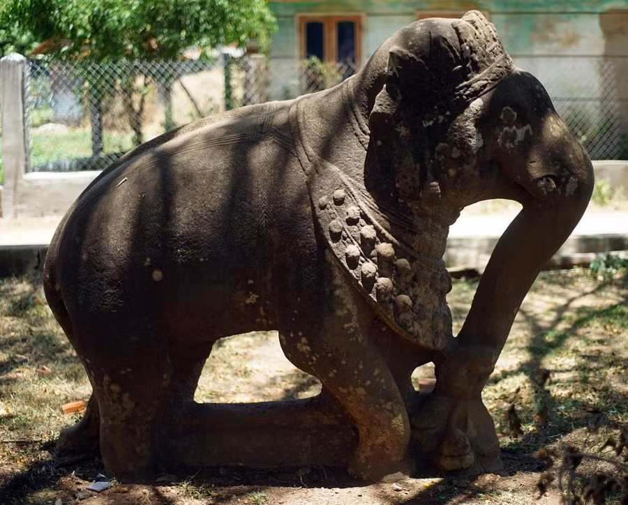| Cặp tượng voi đá thành Đồ Bàn. Ảnh: IT |