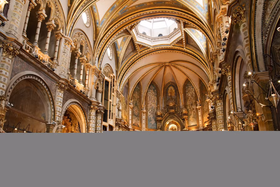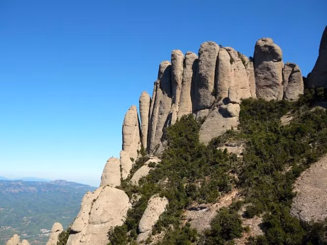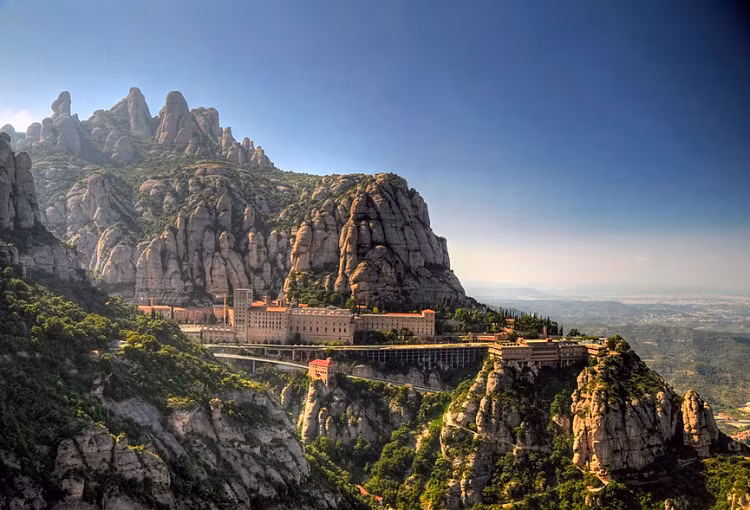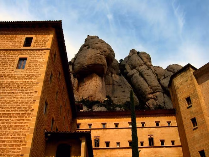 Nằm ở vị trí cao 1.236 mét trên dãy núi cao nhất xứ Catalonia, nhiều người mới nhìn qua thâm chí chưa thấy rõ quần thể tu viện giữa núi non này. Công trình bao gồm nguyện đường chính, nhiều nhà tu nhỏ và bảo tàng với tông màu nâu, xám, gần như hòa làm một với cảnh quan núi non xung quanh.