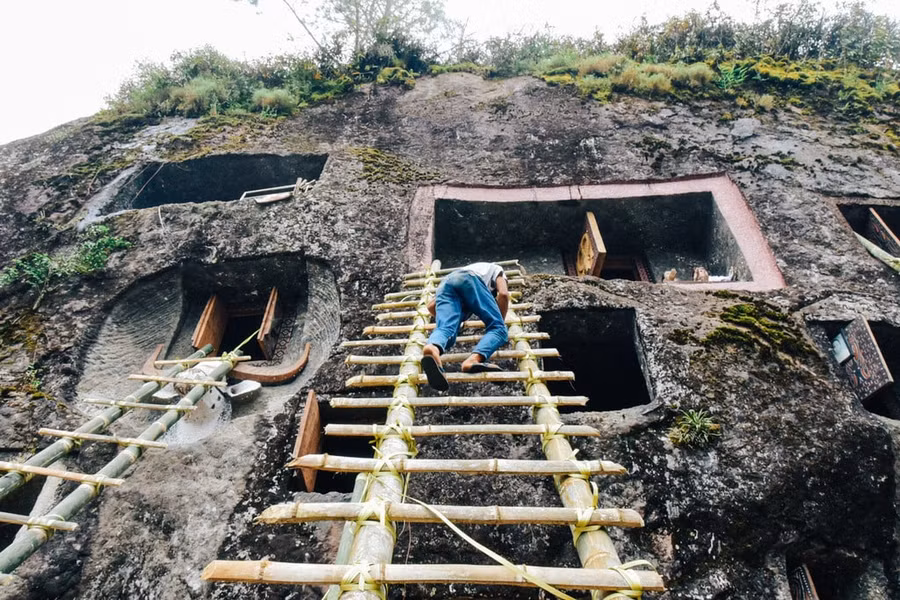 Người xem nghi lễ vây kín quanh hang động, nơi lưu giữ những ngôi mộ đá. Có những ngôi mộ đã tồn tại hàng trăm năm.