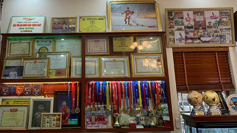 Tủ kính tại phòng khách nhà cầu thủ Nguyễn Quang Hải tại Đông Anh chật kín hàng loạt những danh hiệu cá nhân lẫn tập thể. Trên chiếc bể cá đặt ở vị trí trang trọng nhất phòng khách, hai Quả bóng Vàng và Quả bóng Đồng Việt Nam đứng song hành bên nhau một cách đầy kiêu hãnh.