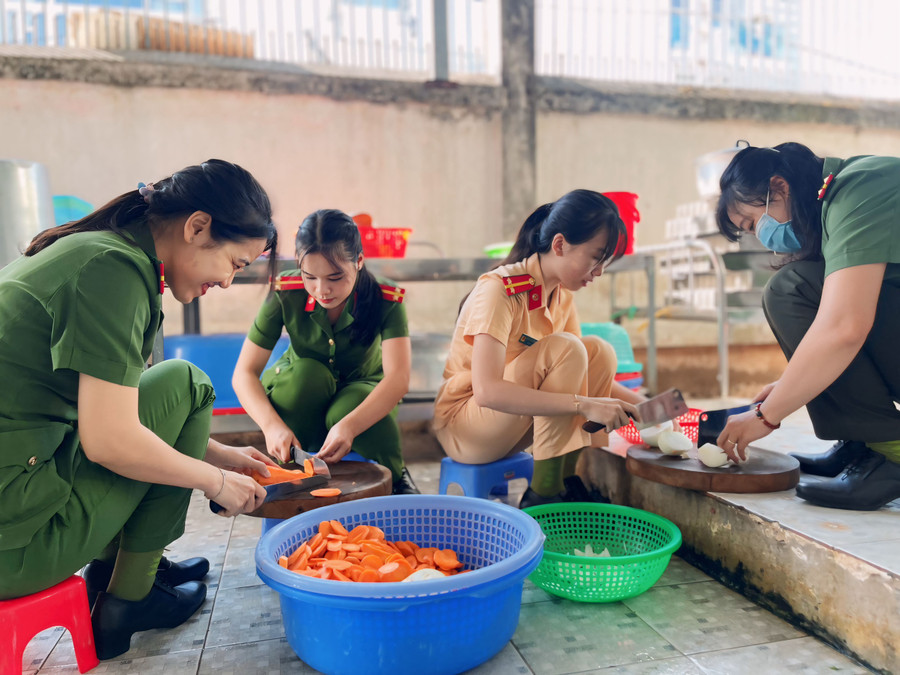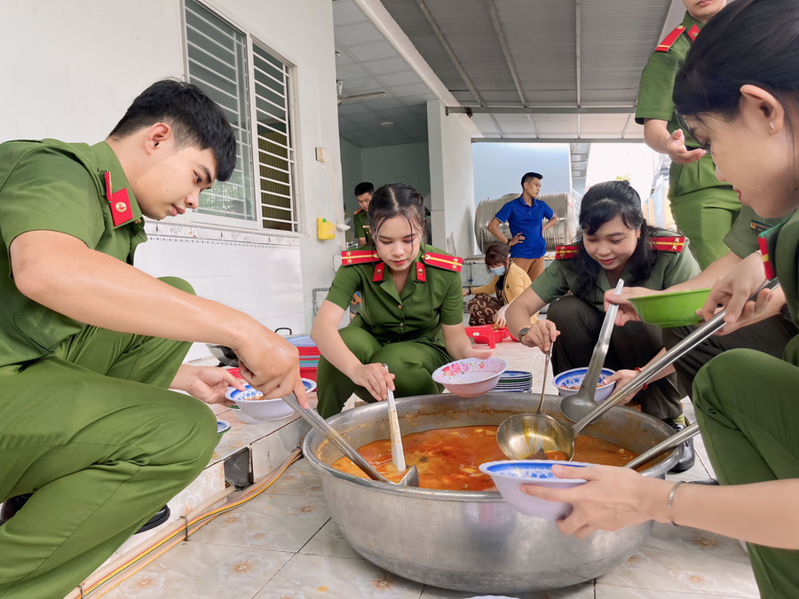 | Đoàn viên, thanh niên Công an TP Long Xuyên chuẩn bị các món ăn. |