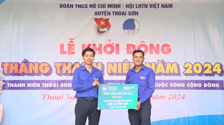 Cùng đó, Đoàn cơ sở Ngân hàng Thương mại Cổ phần Đầu tư và Phát triển Việt Nam (BIDV), chi nhánh An Giang hỗ trợ 500 quyển tập cho học sinh có hoàn cảnh khó khăn trên địa bàn và phối hợp Đoàn Khối Cơ quan và Doanh nghiệp tỉnh An Giang tặng 4.000 cây xanh (mỗi đơn vị tặng 2.000 cây xanh) cho địa phương.