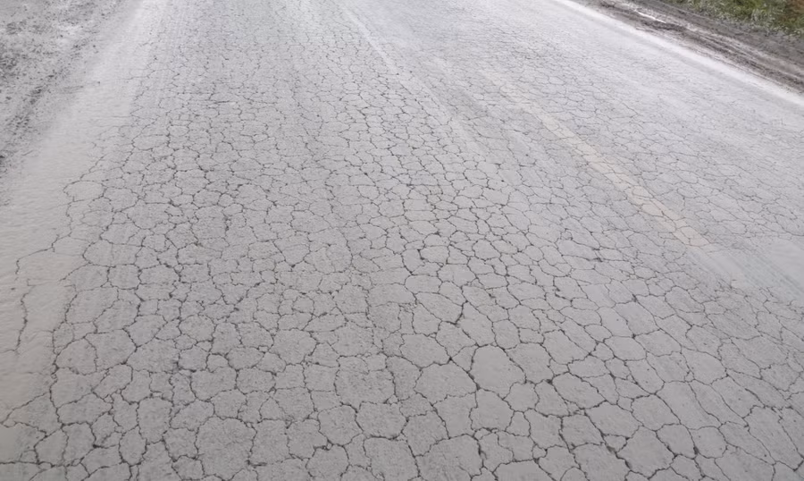 Phần lớn phương tiện giao thông trọng tải nặng di chuyển đã khiến mặt đường xuống cấp nặng, xuất hiện rạn nứt, ổ gà. Tại nhiều đoạn, mặt bê tông nhựa bị rạn nứt, vỡ nát...
