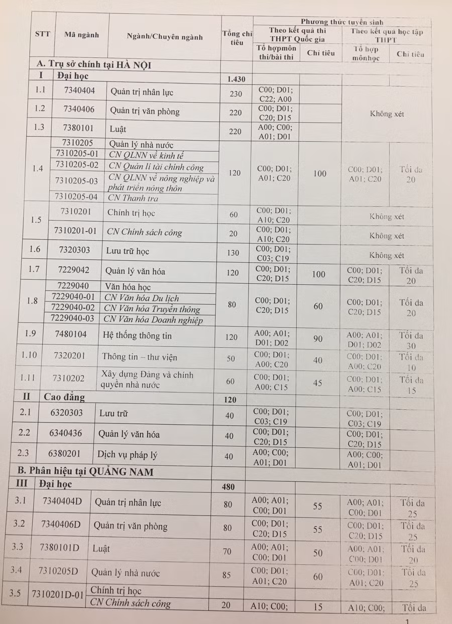 I. Tên trường: Trường Đại học Nội vụ Hà Nội (Mã trường: DNV)