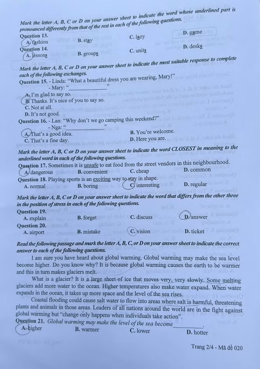 Phần từ vựng em không gặp nhiều từ mới nhưng kiến thức ngữ pháp có phần khó hơn ở các câu hỏi thể bị động, thì quá khứ... Em làm bài trong khoảng 45 phút và soát lại đáp án trong thời gian còn lại. Em hy vọng đạt từ 8 - 9 điểm môn Tiếng Anh.