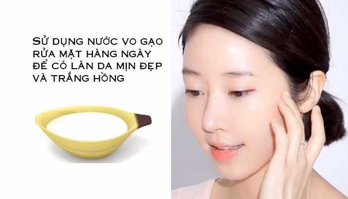 Dùng bông thấm nước vo gạo rồi xoa khắp mặt. Dùng nước vo gạo thay nước tẩy trang trong thời gian dài sẽ làm cho da sáng trắng sáng, mịn màng. Lưu ý, sau khi sử dụng nước vo gạo phải rửa mặt lại bằng nước ấm.