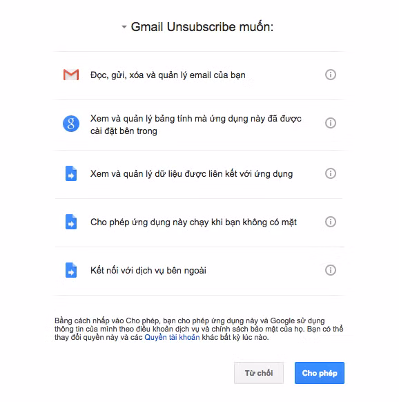 Cho phép đoạn mã này truy cập vào tài khoản Gmail của bạn. Đoạn mã Google Script mã nguồn mở này có thể chạy và không cần lưu hoặc upload bất kỳ byte dữ diệu nào của bạn.