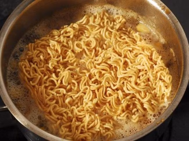 2. Cho mì gói vào nước lúc chưa sôi cho đến khi mì mềm, chín, đừng để chín quá sẽ bị bở mềm. Vớt mì ra để ráo.