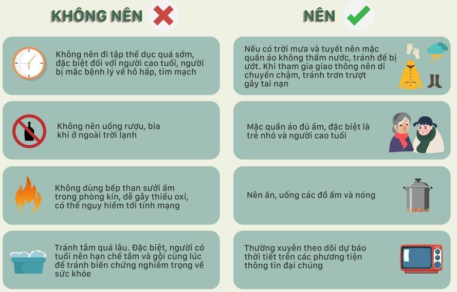 Rèn luyện sức khỏe, vệ sinh cá nhân hàng ngày nhưng phải ở nơi kín gió và có thiết bị sưởi ấm để tránh nhiễm lạnh. Giữ ấm cơ thể, tránh tiếp xúc đột ngột với không khí lạnh;