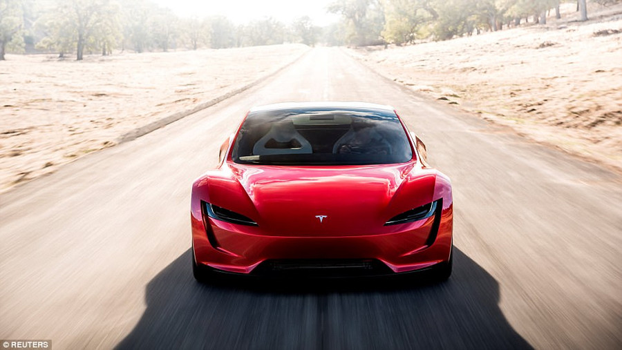 Chiếc xe Roadster gây ngạc nhiên cho mọi người khi nó xuất hiện trong buổi ra mắt tại một sân bay tại Los Angeles, Mỹ.
