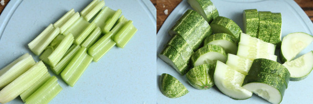 - Thái rau cần tây, chân vịt thành từng khúc.