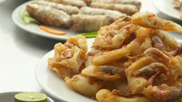 Cá được chiên giòn cùng với hành và rau mùi trong chảo, khiến bất cứ du khách nào cũng khó có thể cưỡng lại hương vị này.