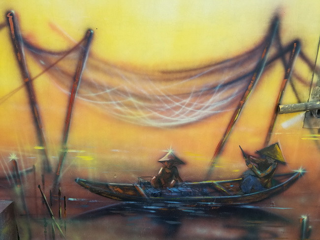 Những bức bích họa về khung cảnh đầm phá Tam Giang và con người của thôn Ngư Mỹ Thạnh được tái hiện trên những bức ảnh đầy màu sắc.