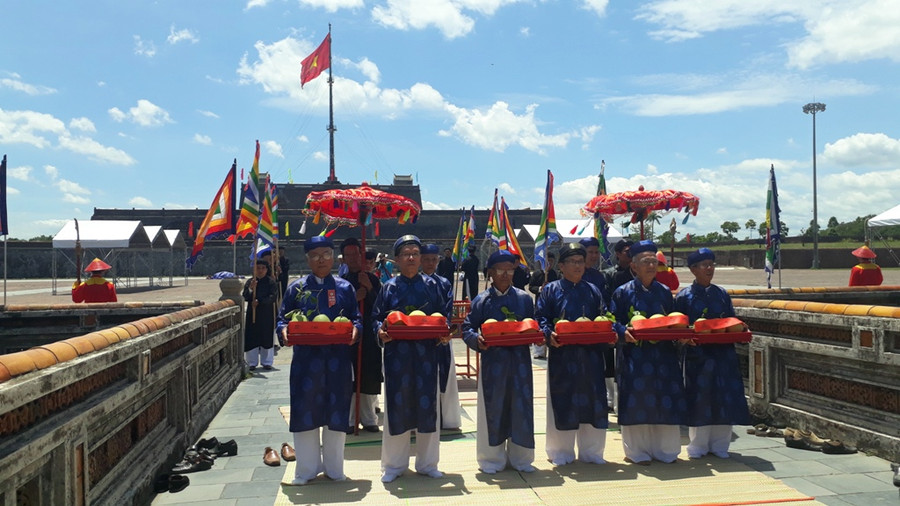 | Nghi lễ cung tiến thanh trà được diễn ra trang nghiêm trước cửa Ngọ Môn - Đại nội Huế  |