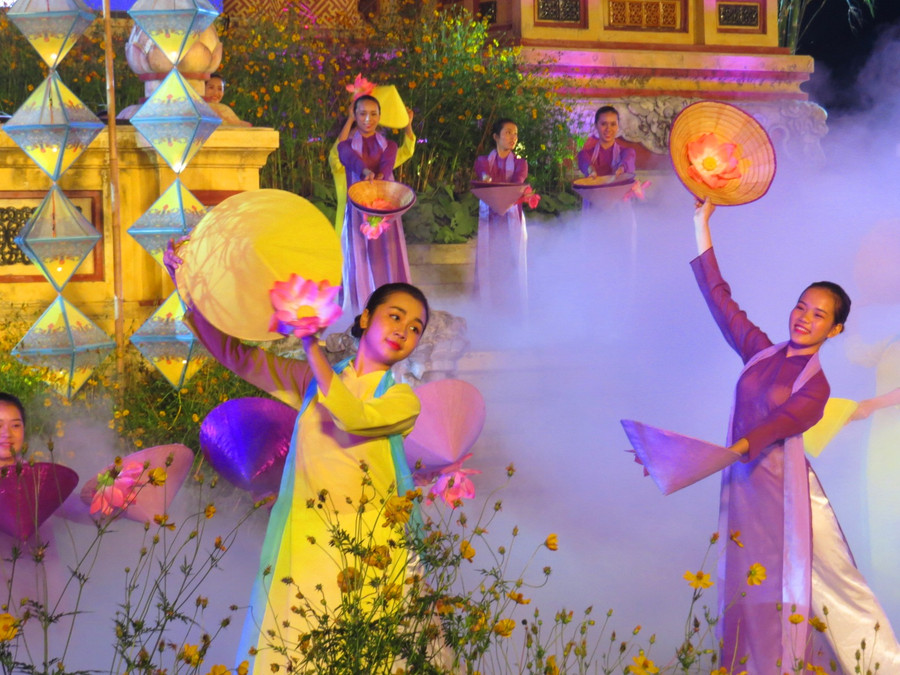 | Sắc tím đặc trưng của xư Huế trên sân khấu bế mạc Festival Nghề truyền thống Huế 2019. |
