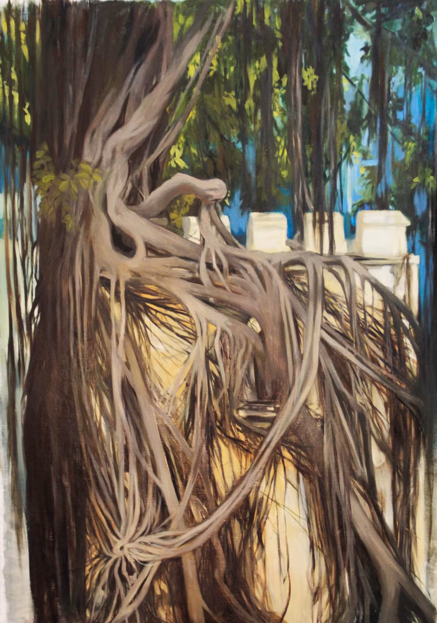 Sống cùng bố, mẹ ở khu vực Hồ Tây, chị cảm nhận sâu sắc vẻ đẹp của khu vực này. Với chị, cảnh sắc Hồ Tây luôn biến ảo thú vị như trong một bộ phim. Đặc biệt là màu sắc của cảnh quan, cây lá, mặt nước hồ sẽ thay đổi theo từng giờ, và chị đắm say ngắm nghía, chiêm nghiệm, và đưa vào những tác phẩm của mình.