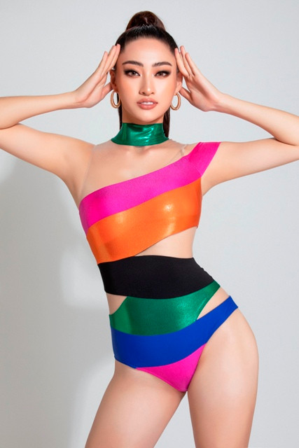 Lương Thùy Linh là nàng hậu gây ấn tượng với chiều cao 1m78, số đo ba vòng đạt chuẩn 89-62-92 và đặc biệt là đôi chân dài 1m22. Khéo léo sở hữu những lợi thế của mình kết hợp những thiết kế bikini phá cách, Lương Thùy Linh đã có màn biến hóa hình ảnh vô cùng đa dạng, ấn tượng.