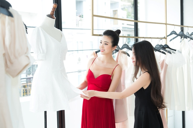 Buổi chiều, Thúy An cùng trợ lý tới thử đồ tại một thương hiệu cho buổi shooting studio theo kế hoạch của công ty. Gây ấn tượng trong lòng người hâm mộ bởi nét đẹp mong manh và thanh tao, Thúy An khoe nét dịu dàng trong từng thiết kế vừa khéo léo khoe đường cong quyến rũ, nhưng vẫn giữ cho mình nét Á đông sẵn có.