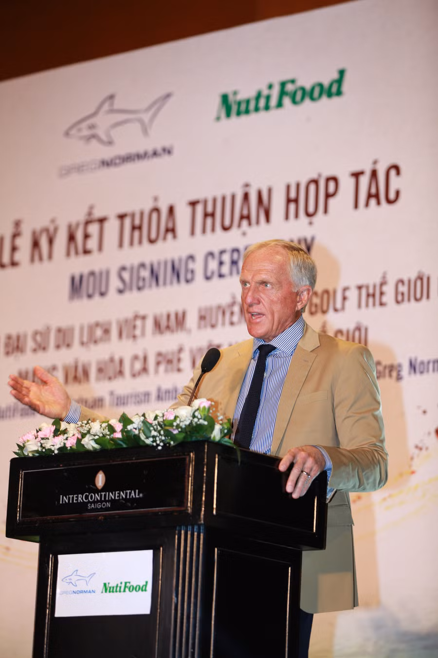 Nói về cơ duyên hợp tác với NutiFood, ông Greg Norman chia sẻ: “Trong quá trình thiết kế sân golf ở Việt Nam, nhóm kiến trúc sư thiết kế của tôi đã tình cờ được sử dụng NutiCafé của NutiFood và rất ấn tượng. Họ đã báo lại cho tôi và từ đây tôi bắt đầu quan tâm tới công ty này. Trước khi tới Hà Nội nhận quyết định trở thành đại sứ du lịch của Việt Nam, tôi đã có buổi tiếp xúc với NutiFood tại TP.Hồ Chí Minh, được thưởng thức sản phẩm NutiCafé, được giới thiệu về văn hóa cà phê đặc sắc của Việt Nam, được xem trình diễn các cách pha chế cà phê, được giới thiệu về nông trường cà phê NUTICADA huyền thoại có lịch sử gần trăm năm và tôi vô cùng thích thú.