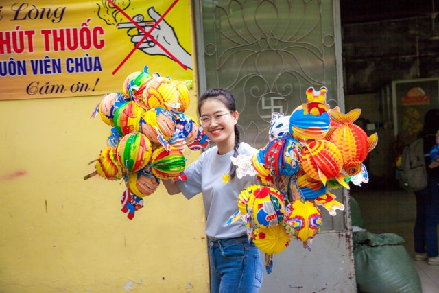 Trước tấm lòng nhân hậu của Ngọc Thoa và các bạn, trụ trì chùa Kỳ Quang – sư Thích Thiện Chiếu chia sẻ: “Trong dịp ý nghĩa như thế này mà các bạn đến đây, mang quà bánh, lồng đèn và nhất là tình thương đến cho các em nhỏ ở đây. Điều này thực sự rất quý.