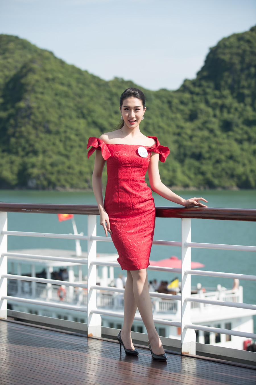 Sundeck (boong tàu cao nhất) cũng chính là địa điểm "sống ảo" lý tưởng cho các thí sinh tự tin khoe dáng giữa hoàng hôn trên vịnh.