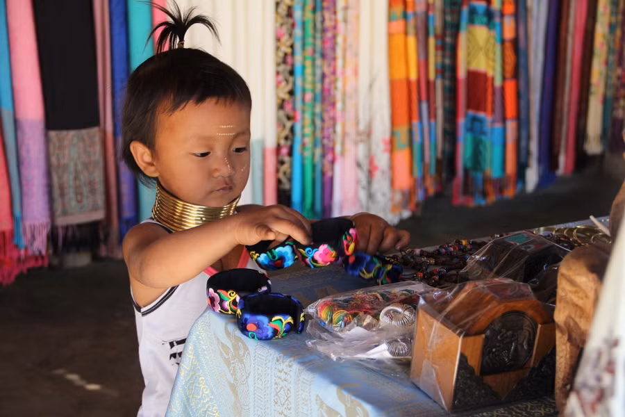 Thân thiện là ấn tượng khi thăm làng cổ dài Karen. Gặp người nào ở đây bạn cũng nhận được nụ cười ấm áp, dễ mến. Họ tự nguyện chụp ảnh với khách, giúp khách đeo những chiếc vòng cổ “trăng khuyết”, hướng dẫn khách dệt vải… mà không đòi hỏi khách phải mua đồ lưu niệm.