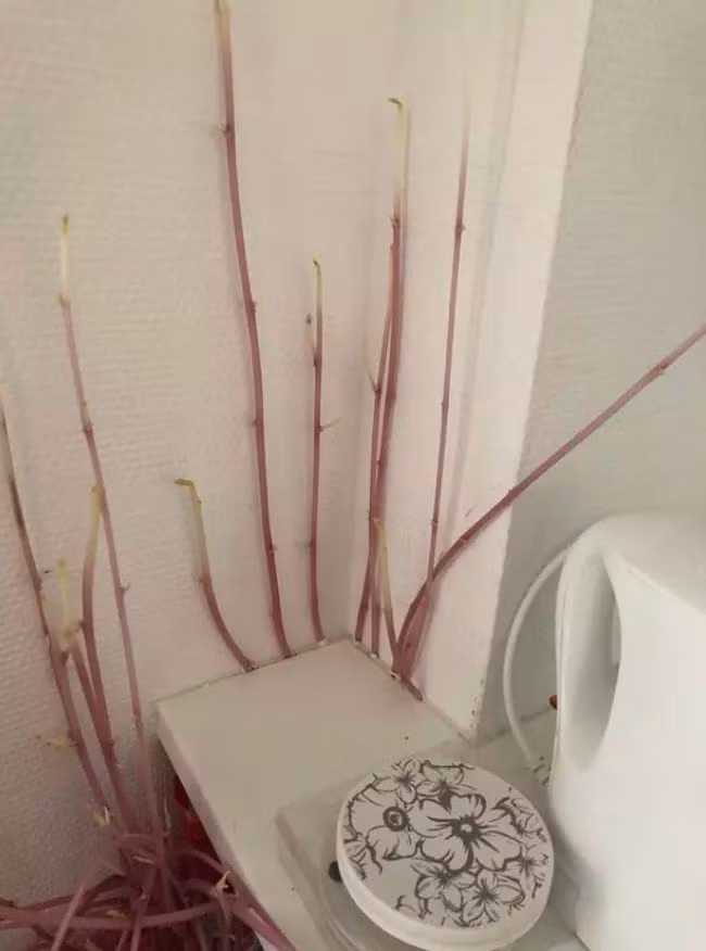 "Khi tôi vừa mở cửa, tôi lập tức chú ý đến thứ gì đó đang leo trên tường nhà bếp. Khi chưa mở đèn, tôi không nhận ra đó là khoai tây. Lúc mở cửa sổ cho ánh sáng tràn vào nhà, tôi mới biết thứ trên tường là gì rồi lấy điện thoại chụp lại cảnh tượng đặc biệt ấy" - Donna chia sẻ.
