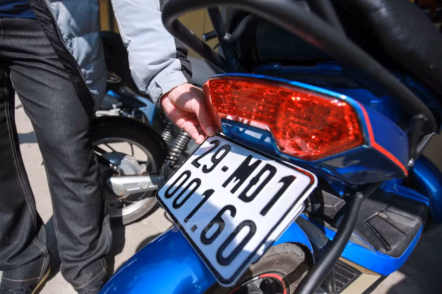 Mẫu và các dãy số các loại biển số xe này đều giống xe máy. Điểm khác biệt duy nhất là biển số xe máy điện mang số 29MĐ ở trên và năm số tự nhiên ở phía dưới. (Ảnh: Minh Sơn/Vietnam+)
