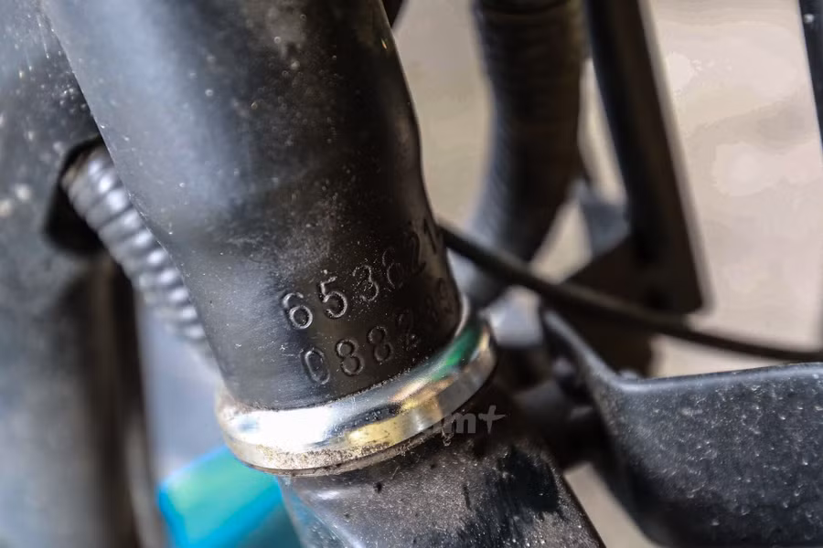Theo ghi nhận, việc lấy số khung, số máy khá khó khăn vì thiết kế đặc biệt của xe máy điện. (Ảnh: Minh Sơn/Vietnam+)