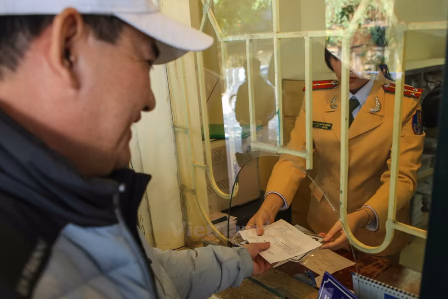 Ba ngày sau khi nộp các thủ tục trên, người dân mới nhận được giấy đăng ký xe. (Ảnh: Minh Sơn/Vietnam+)